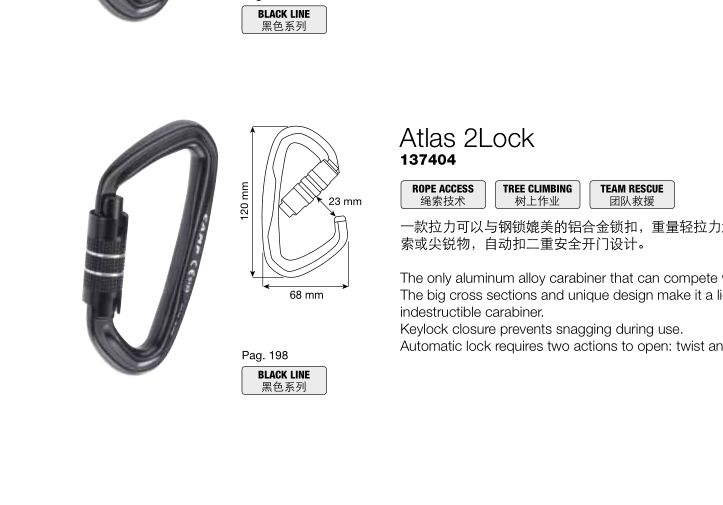 产品名称:CAMP/坎普 137404 ATLAS 2LOCK D型超大拉力自动扣2重安全门主锁 自动扣主锁