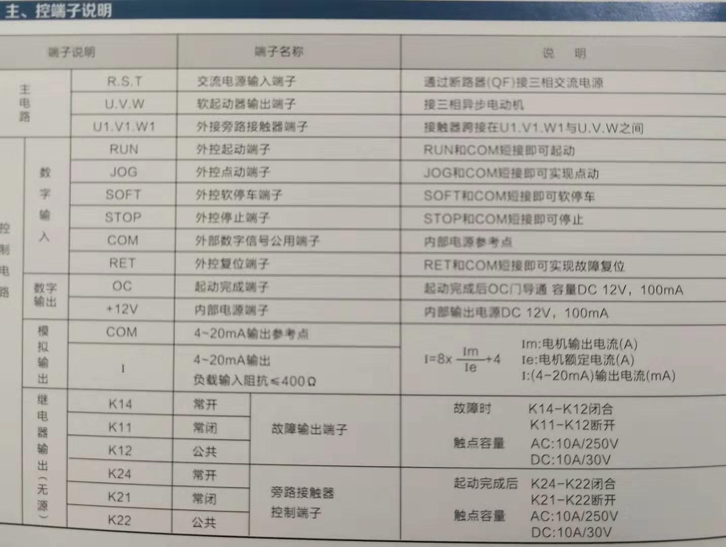 内置+12V电源,具备4~20mA模拟电流输出,可设定软停功能。