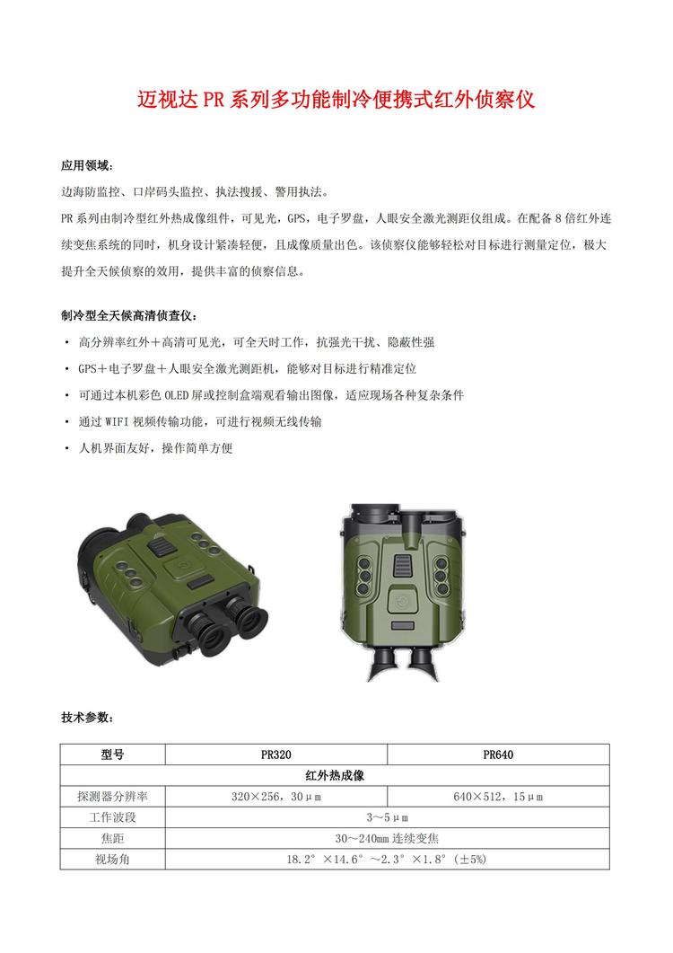 迈视达PR320/PR640多功能制冷型便携式红外侦察仪双目红外热成像 品牌 | 迈视达 | ||