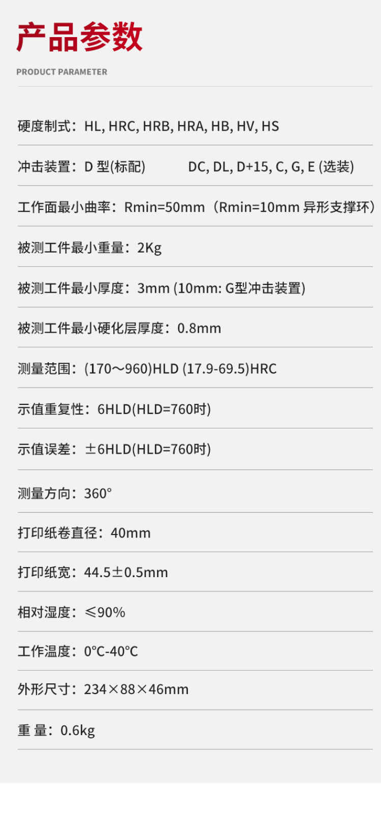 示值误差和示值重复性 ±6HLD