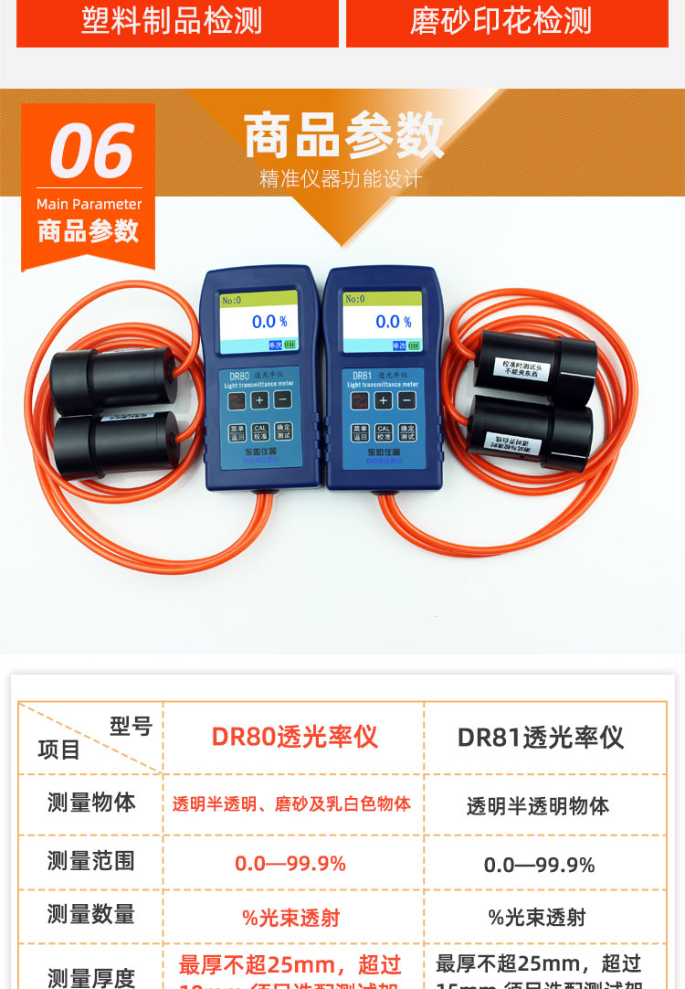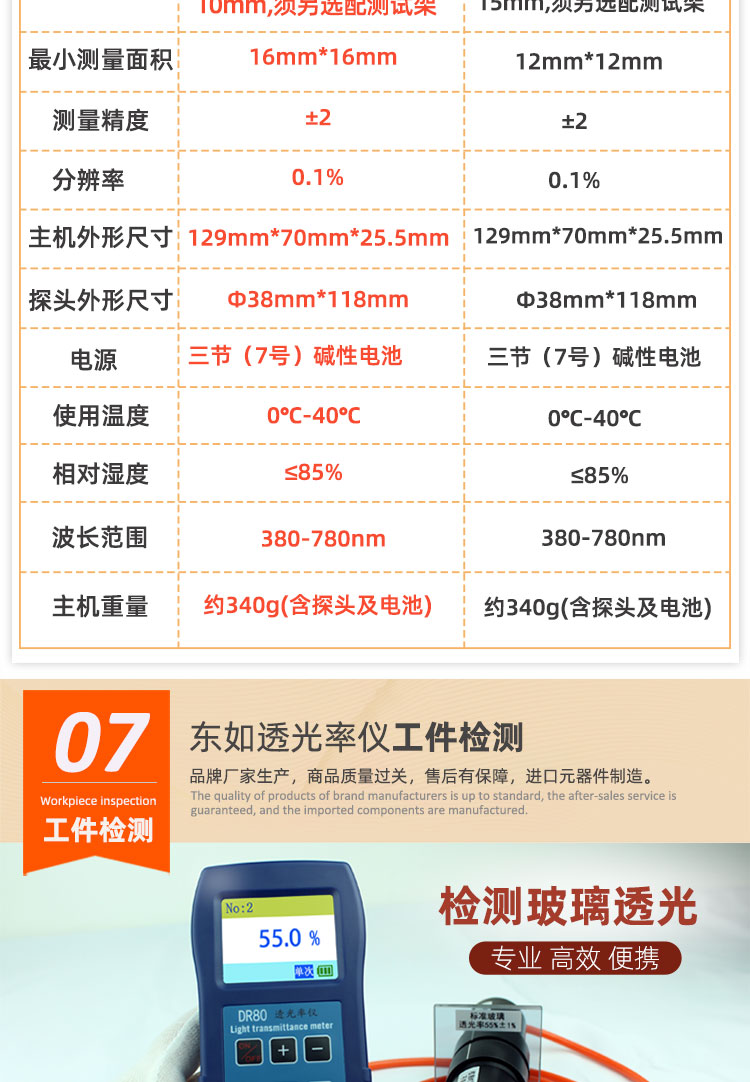 测量厚度 最厚不超25mm,超过 10mm,须另选配测试架