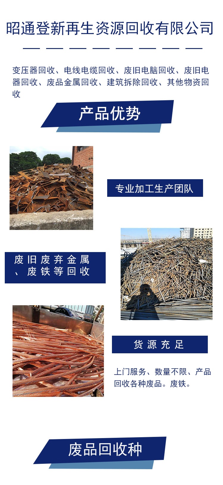 昭通登新再生资源回收有限公司 智能客服智能客服在线解答,若涉及资金打款事宜,务必与厂家进行电话确认。