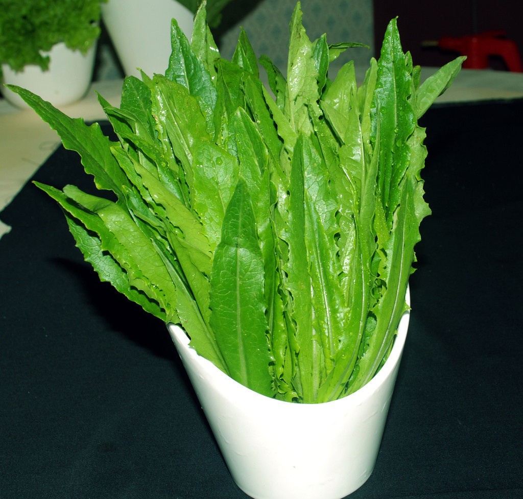 叶片直立,小圆尖形,绿色,皮肉绿色,茎叶两用,以食茎尖、叶为主,清香脆嫩。抗病,长势旺,生长速度
