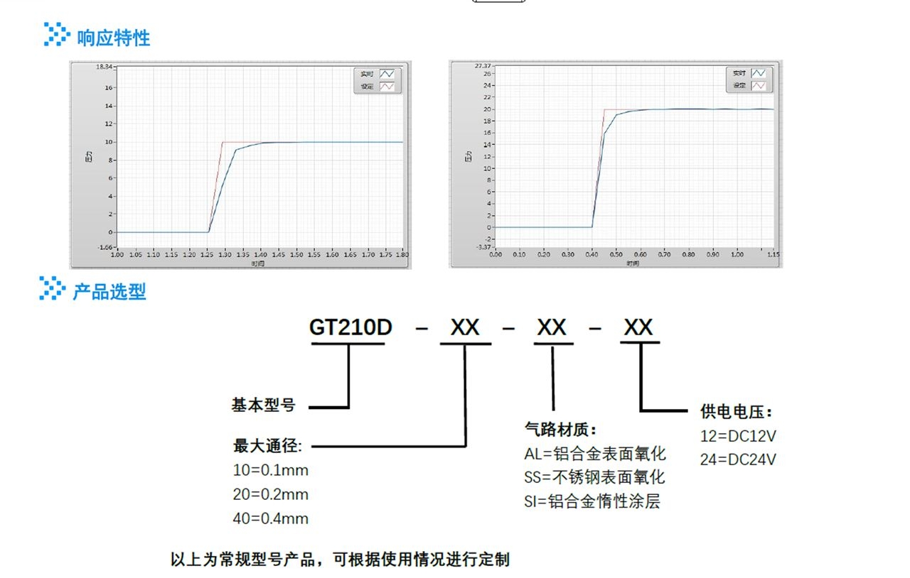 操作环境 | 0-50℃ | 大电流要求 | <200mA | 响应时间 | <100ms (取决于入口压力) |