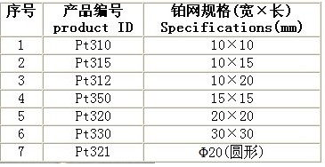 铂网纯度:99.95%