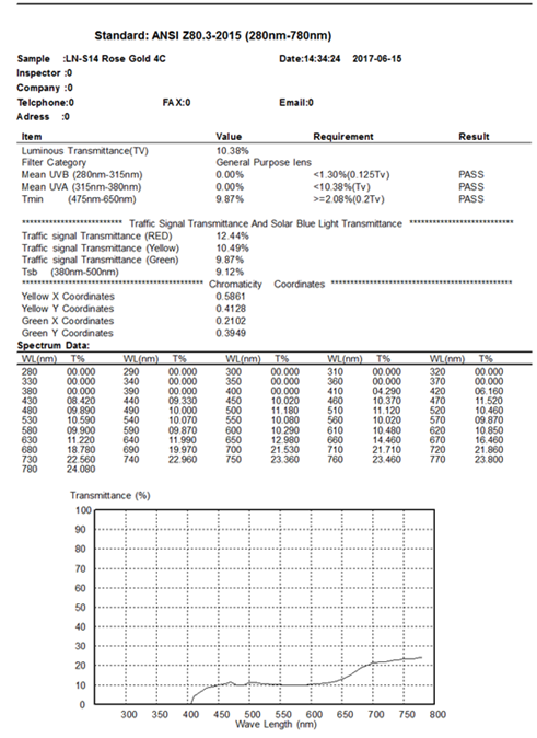 定制的软件系统能够针对眼视光领域要求,满足诸多国内外行业标准,如ISO-12312,ISO-8980.3,ANSI Z80.3,GB-10810.3,QB2457,QB2659,QB2506等,并且可以自行设定或定制特殊标准。