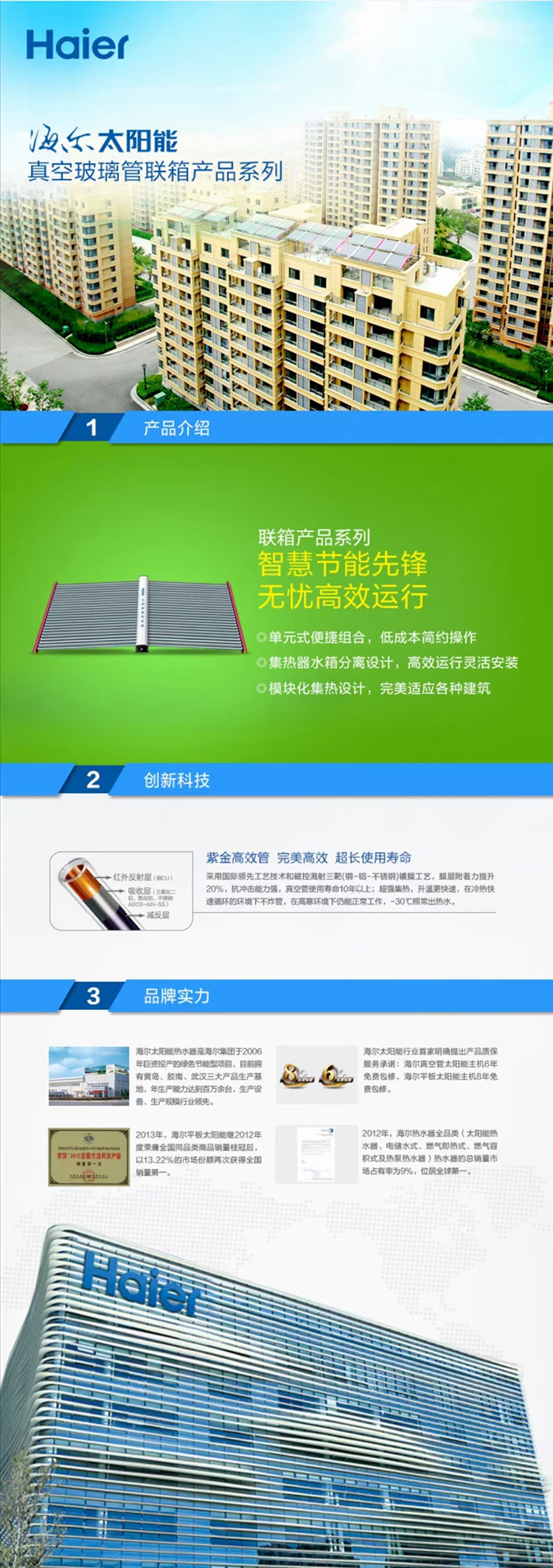 品牌 | 海尔太阳能 | 产品名称 | 联箱太阳能热水器 |