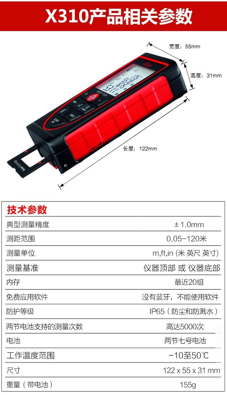 徕卡(Leica)莱卡X310手持激光测距仪120米高精度红外煤矿电子尺量房仪测量仪 徕卡X310激光测距仪标准配置