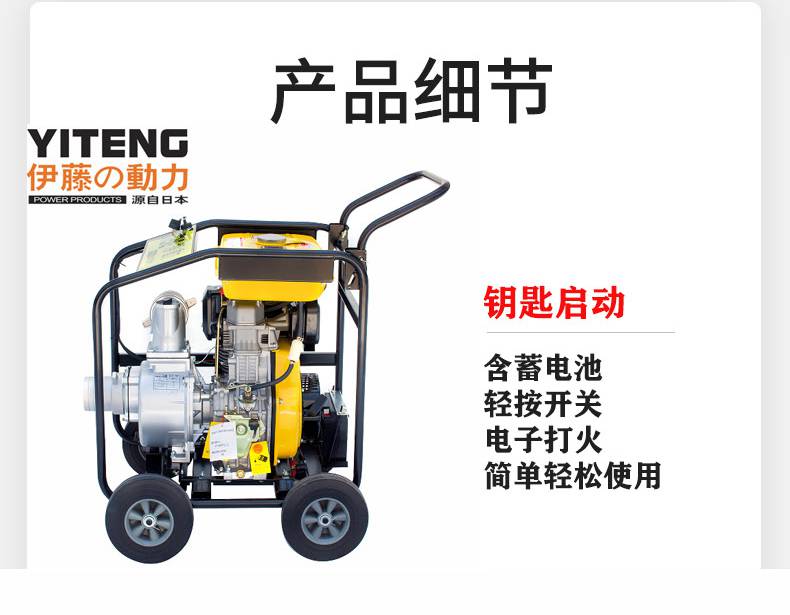 6 8寸柴油机抽水泵 移动式防汛应急排涝泵 伊藤动力YT80DPE/YT60DPE 泵轴位置 | 边立式 | ||