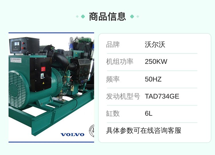 沃尔沃柴油发电机组FFDL-250GF250KW