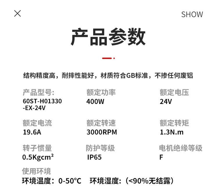 配件名称 | NSK轴承,多摩川编码器,F级绝缘漆 | ||