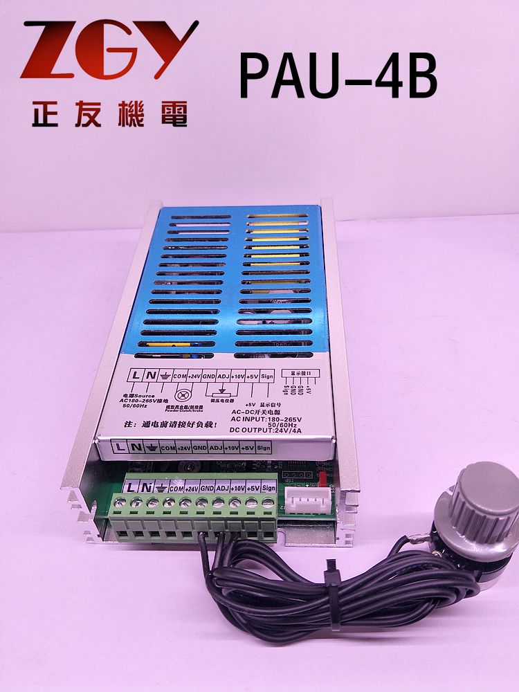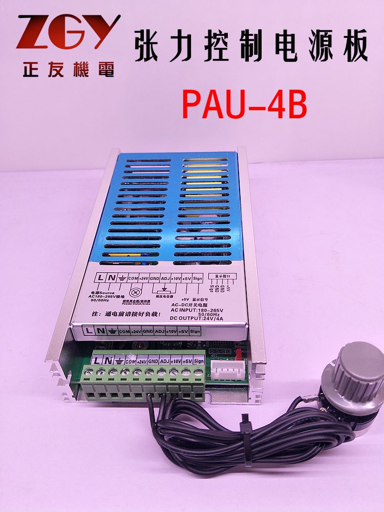 PAU-4B分体式张力控制器功能特点:1-采用脉宽调制,发热小,效率高;2-外部0-10V控制输出0-24V,最大电流4A;3-自动过流保护;4-可配表头显示电流或输出电压。
