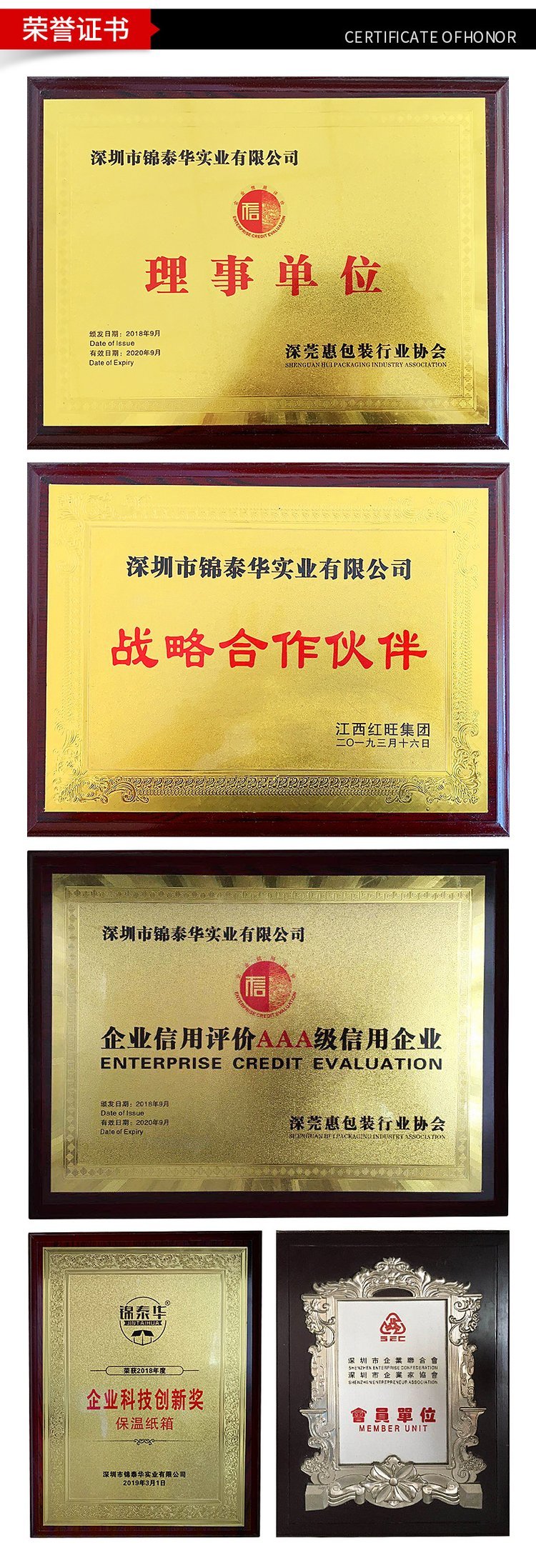 锦泰华全体员工秉承“精心设计、精打细算、精工操作、精益求精”的工作作风;坚持“德不孤、必有邻”的信念和真诚服务态度,赢得社会大众的信任与支持,目前已经拥有品牌为《锦泰华》的创意纸制品品牌、纸品包装、运输缓冲包装设计等多个项目的综合性整合型企业。