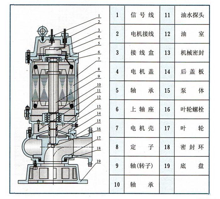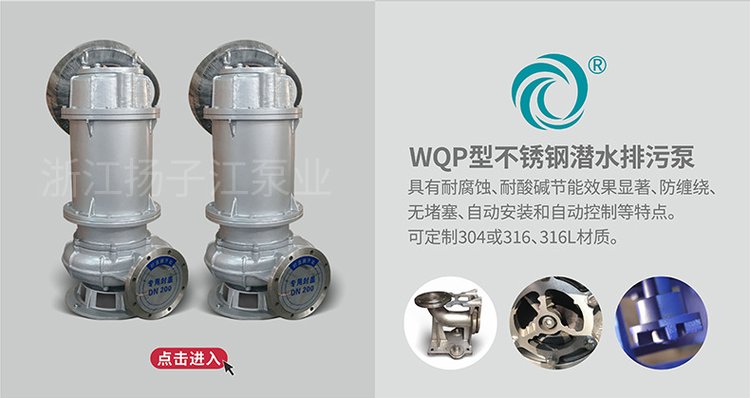 WQ型潜水排污泵采用独特结构和新型机械密封,能有效地输送含有固体物和长纤维。叶轮与传统叶轮相比,该泵叶轮采用单流道或双流道形式,它类似于一截面大小相同的弯管,具有非常好的过流性,配以合理的蜗室,使得该泵具有效率高、叶轮经动静平衡试验,使泵在运行中无振动。