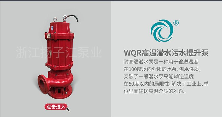 7、 WQ型潜水排污泵可根据用户需要配备双导轨自动耦合安装系统,它给安装、维修带来更大方便,人可不必为此而进入污水坑。