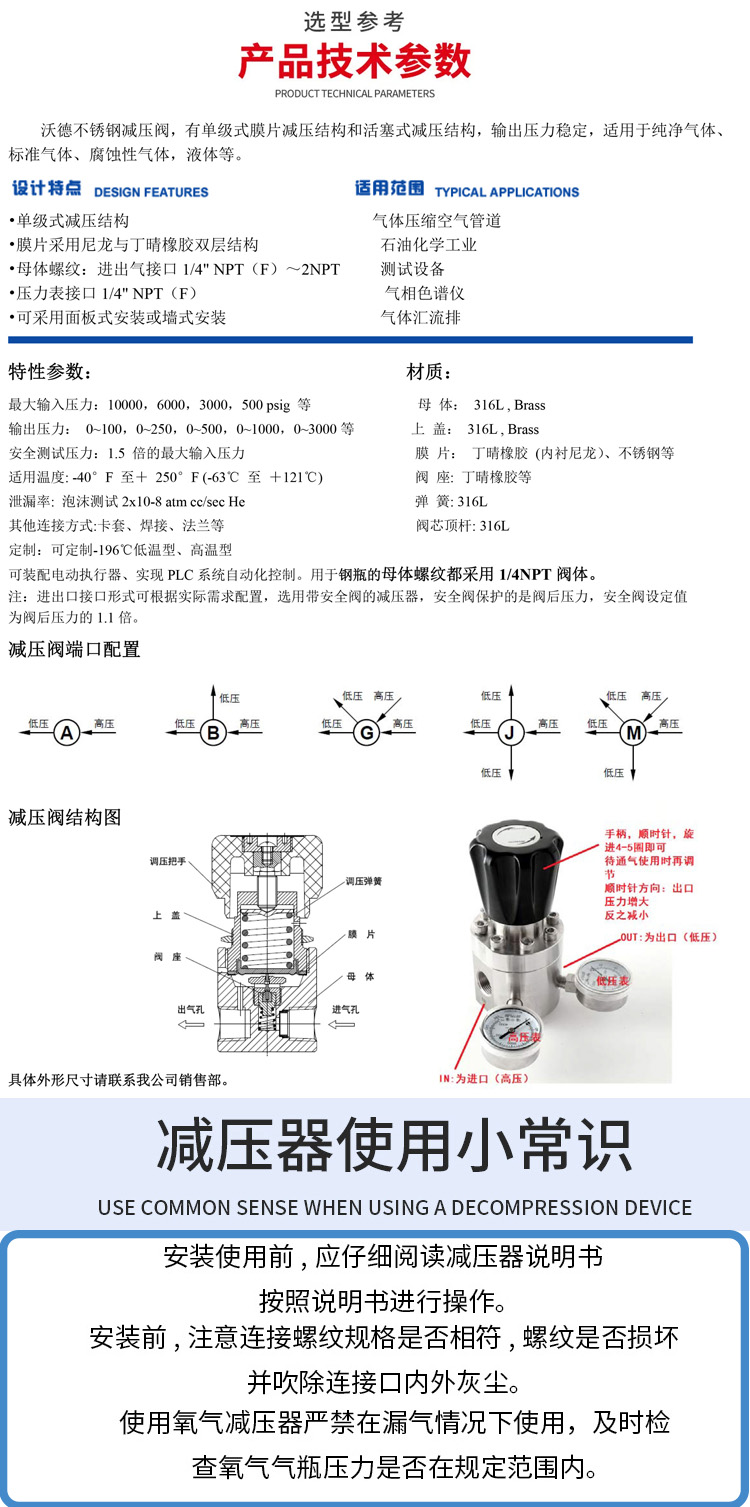 接口形式 | 入口钢瓶接口,出口宝塔、卡套、焊接等 | ||