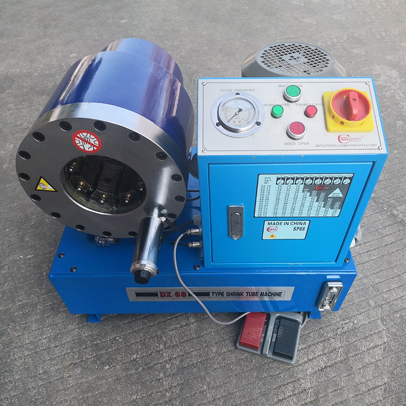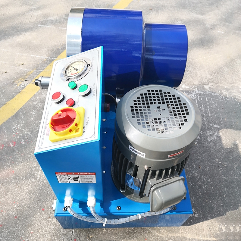 1. 压管机初次使用时应空载扣压20~30次,观察各部位均正常后方可使用。2. 压管机在冬季使用时应空载扣压20~30次,以使油温增高一些。3. 按下张开按钮,模座张开后,根据所扣压胶管规格选用相应的模具安装在模座上,并调整千分尺刻度。4. 把套好接头的胶管置于压管机头内适当位置,使得一次扣压全部长度。5. 按下扣压按钮执行扣压操作,直至压管机头停止扣压自动张开模具为止。6. 取出扣压好的胶管总成,用游标卡尺检测扣压后的接头外套外径尺寸,如与参数表不符应微调千分尺刻度,直到下一根胶管扣压符合要求为止
