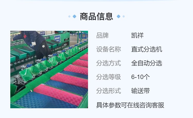 设备适合分选水果 | 苹果、梨、桃、石榴、释迦果等 | ||