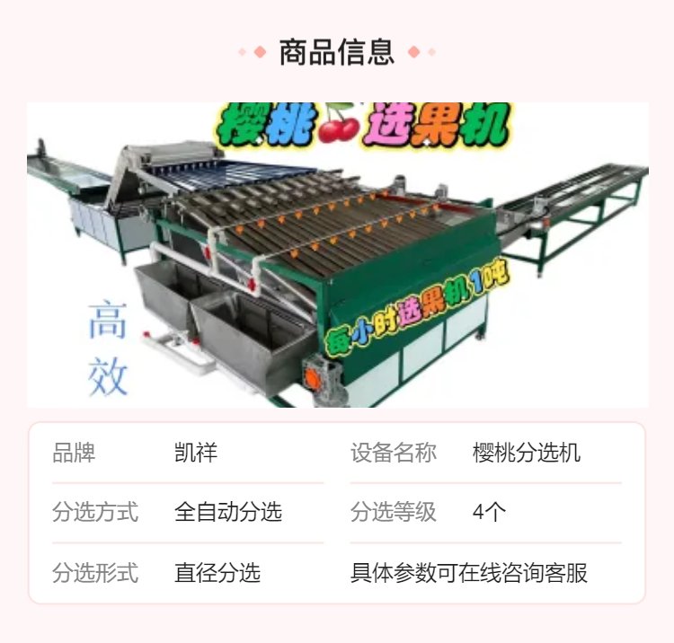 设备适合分选水果 | 大樱桃、车厘分选 | ||