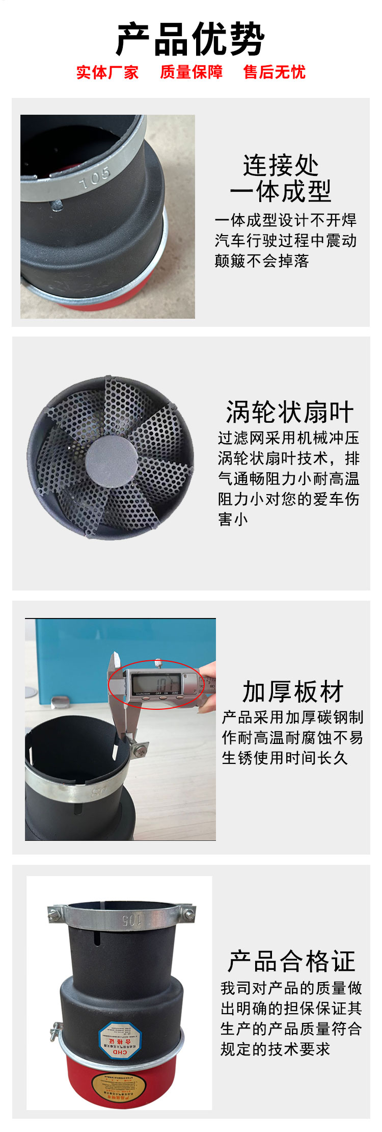 租赁式黑红螺旋防火罩加厚碳钢螺旋防火帽货车涡流式发电机阻火器