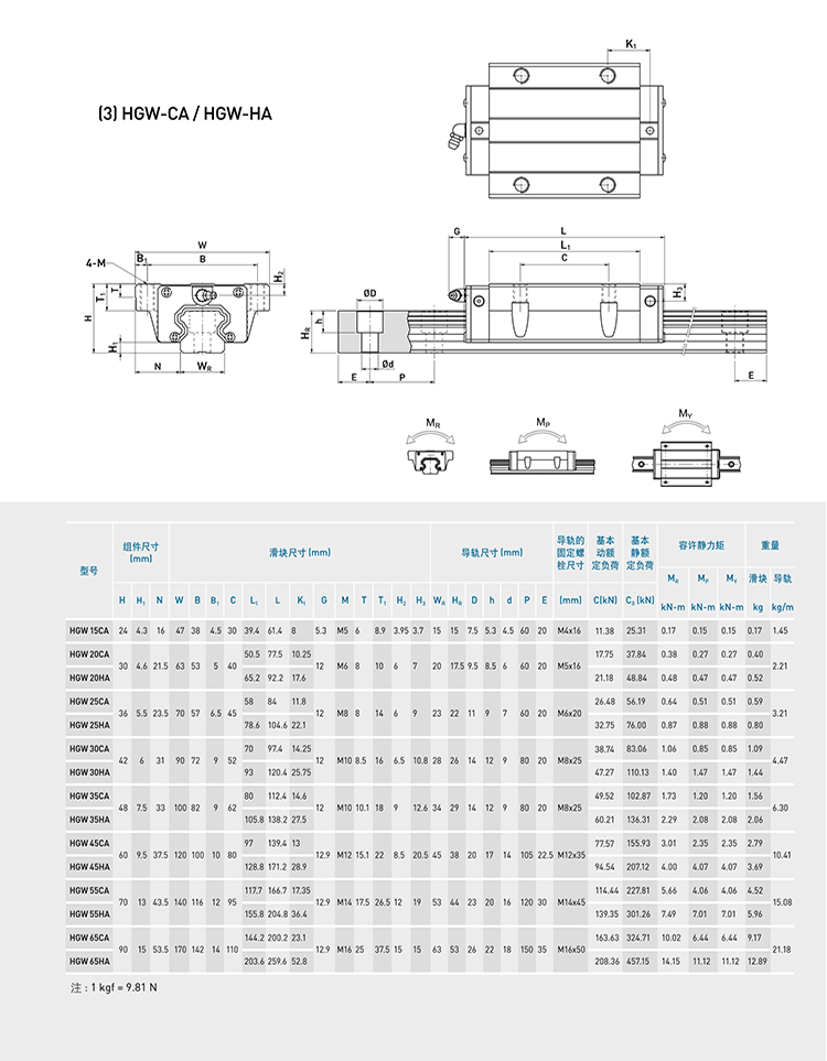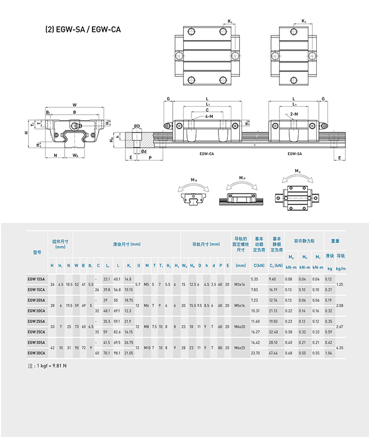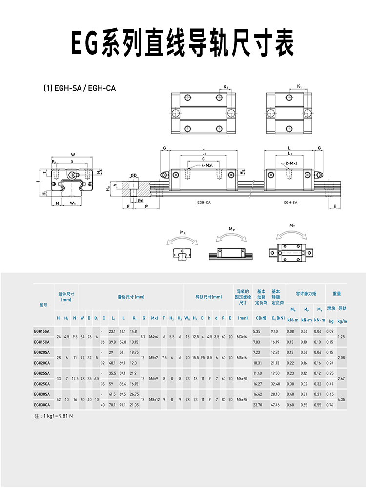 HIWIN上银线性滑轨直线导轨滑块轴承HGEG15202530354555