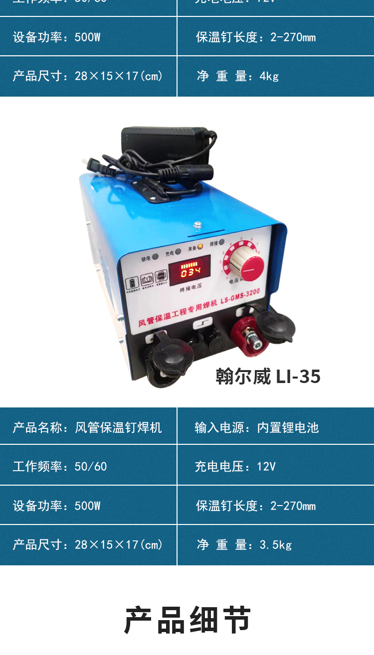 充电款手提式5米长线铜线铝线双枪风管焊钉机厂家