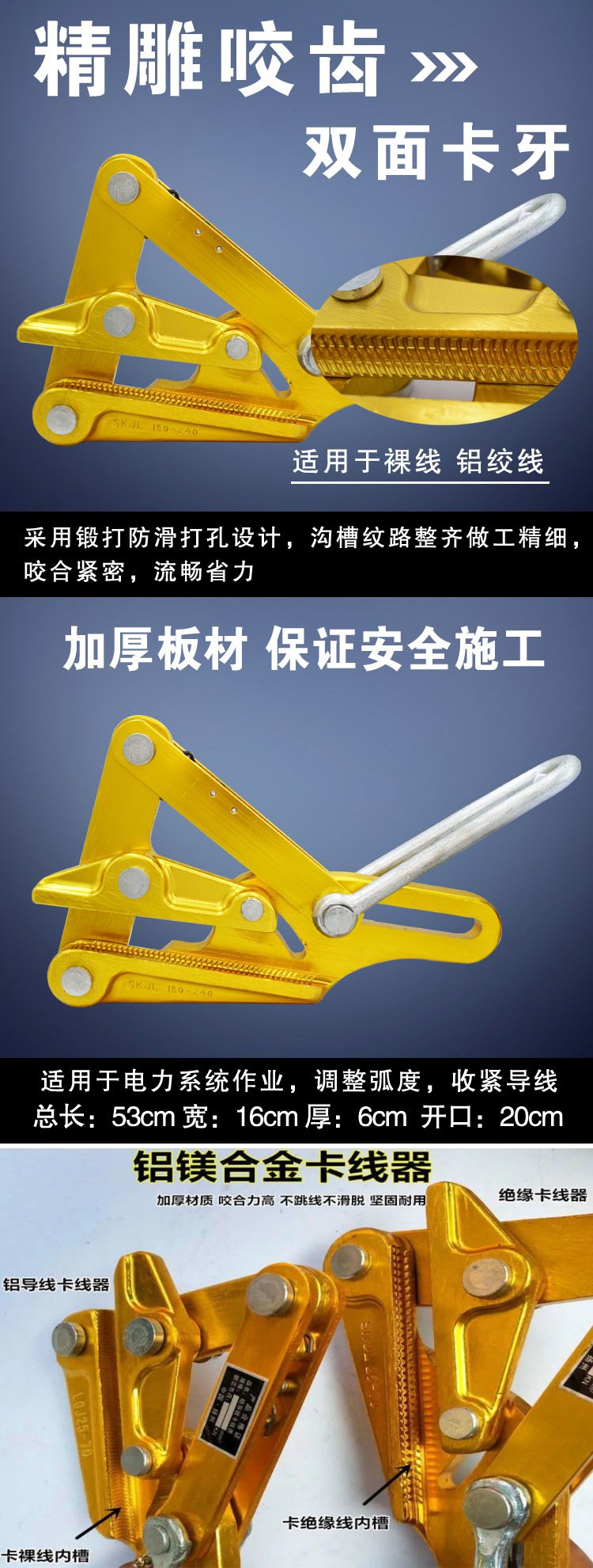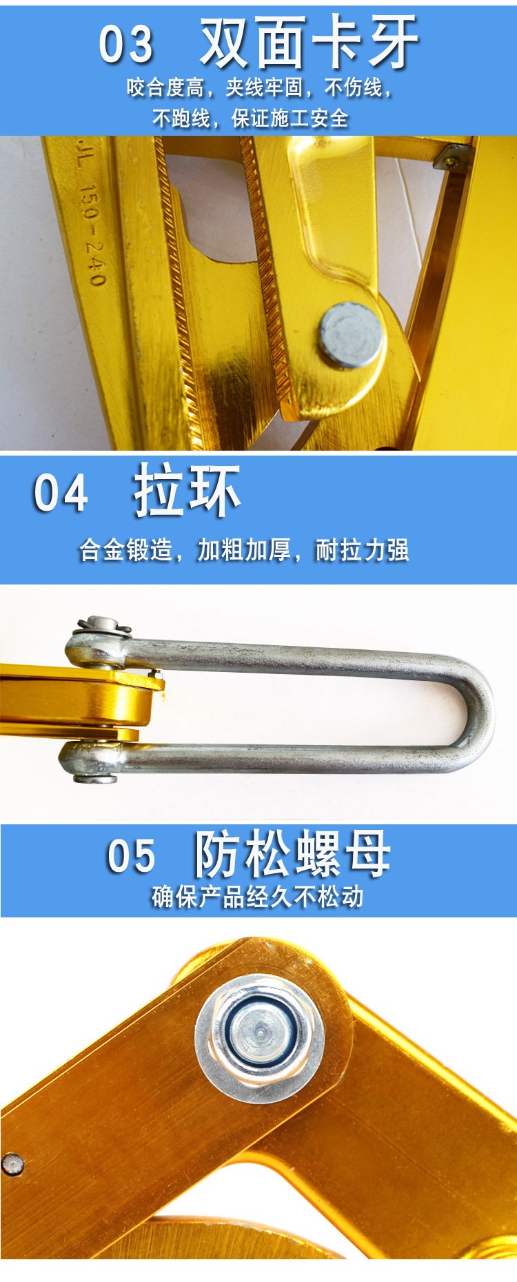 功能用途 | 适合10KV架空绝缘电缆带电用于支持OPGW架空复合地线光缆,光缆直径与夹口的尺寸相同,夹持可靠减小光缆被夹部分的压力,保护光缆内部光纤不受损坏剥皮 | ||