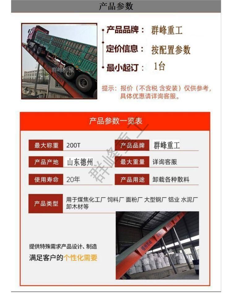液压翻板机粮食仓储大角度大吨位散粮自动卸车机3x18m120t