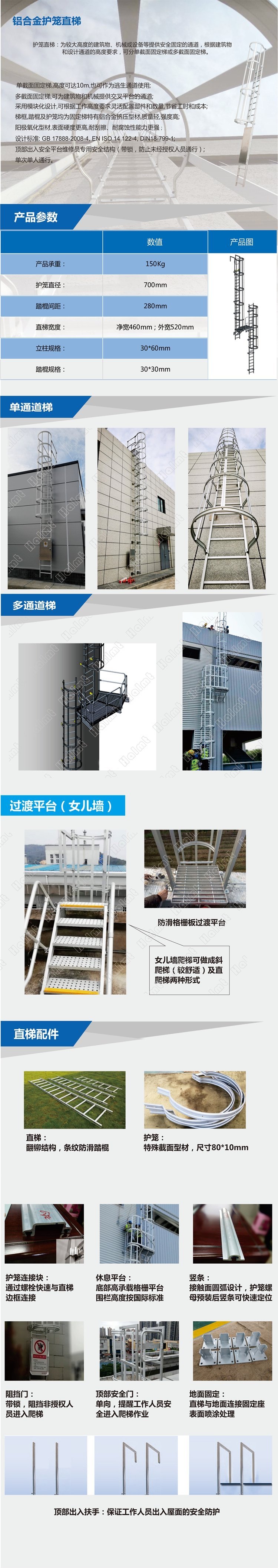 品名 | 华铝机械铝合金护笼爬梯组装式护笼爬梯 | ||