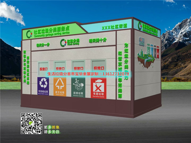 公园坡顶分类垃圾房定做厂家/环卫垃圾分类亭款式效果图 颜色 | 可选 | ||