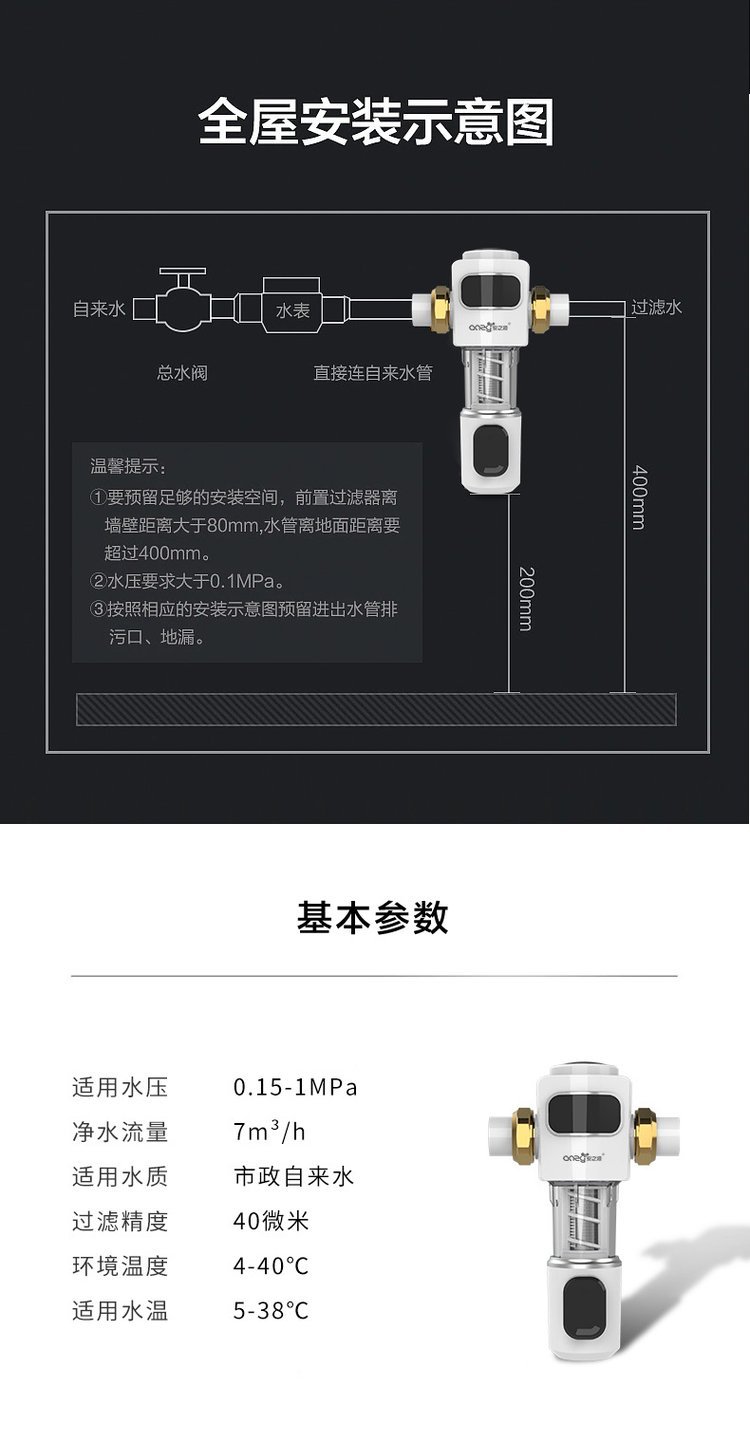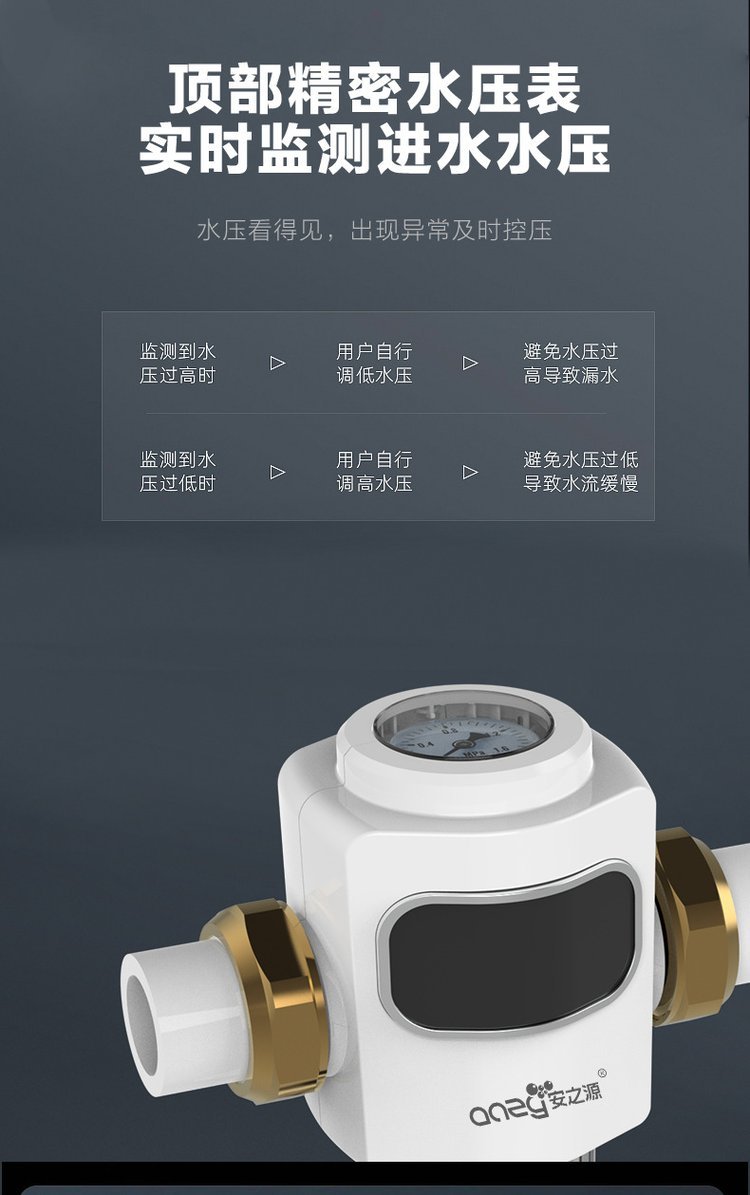 安之源(anzy)全屋自来水自动巡航刮洗功能不锈钢网大流量管道滤水铜前置过滤器SC-Q2