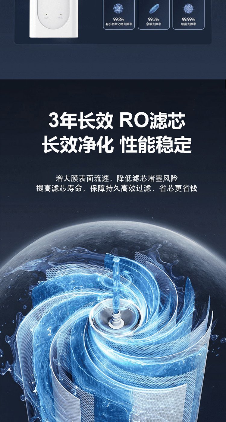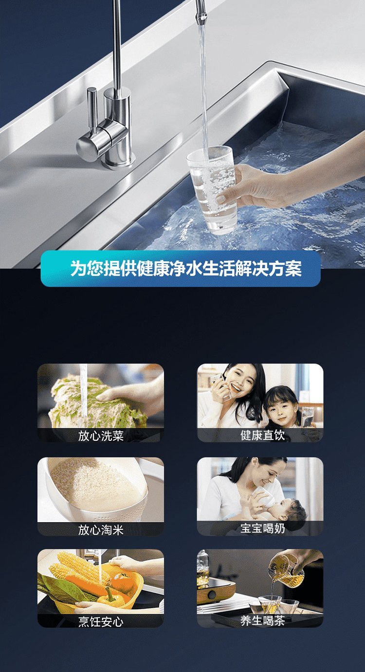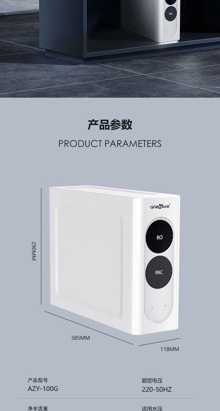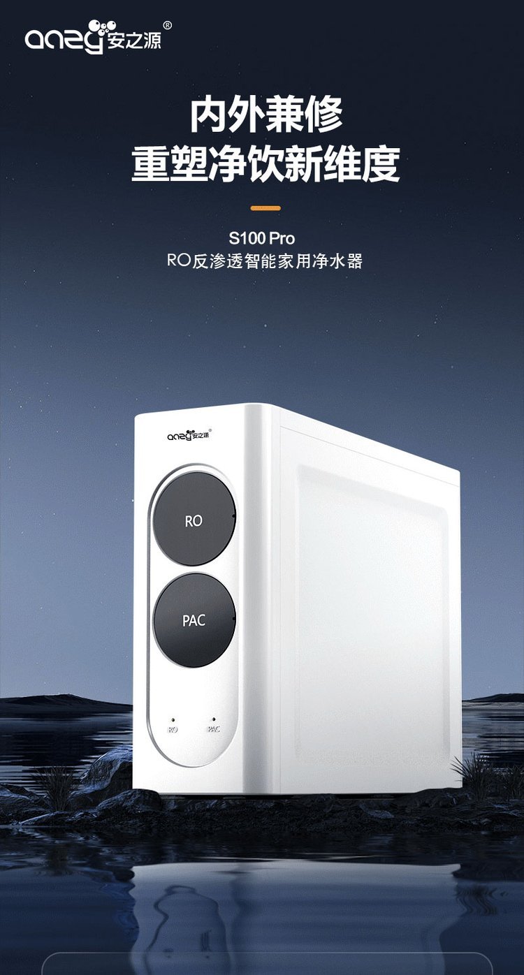安之源出水直饮系列RO反渗透集成水路面板一体式滤芯设计纯水机薄机身占地小S100Pro