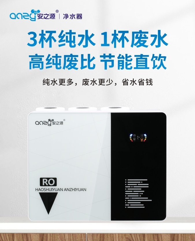 安之源(anzy)智能冲洗100G长效滤芯五级净化家庭厨房自来水出水直饮净水器微废A3
