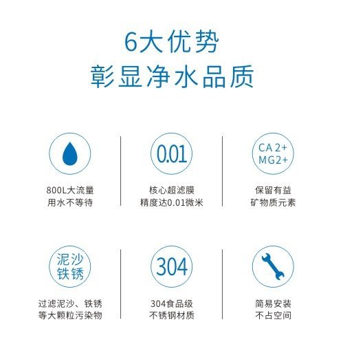安之源厨房超滤净水除菌管道净水机家庭厨卫800大流量超滤机