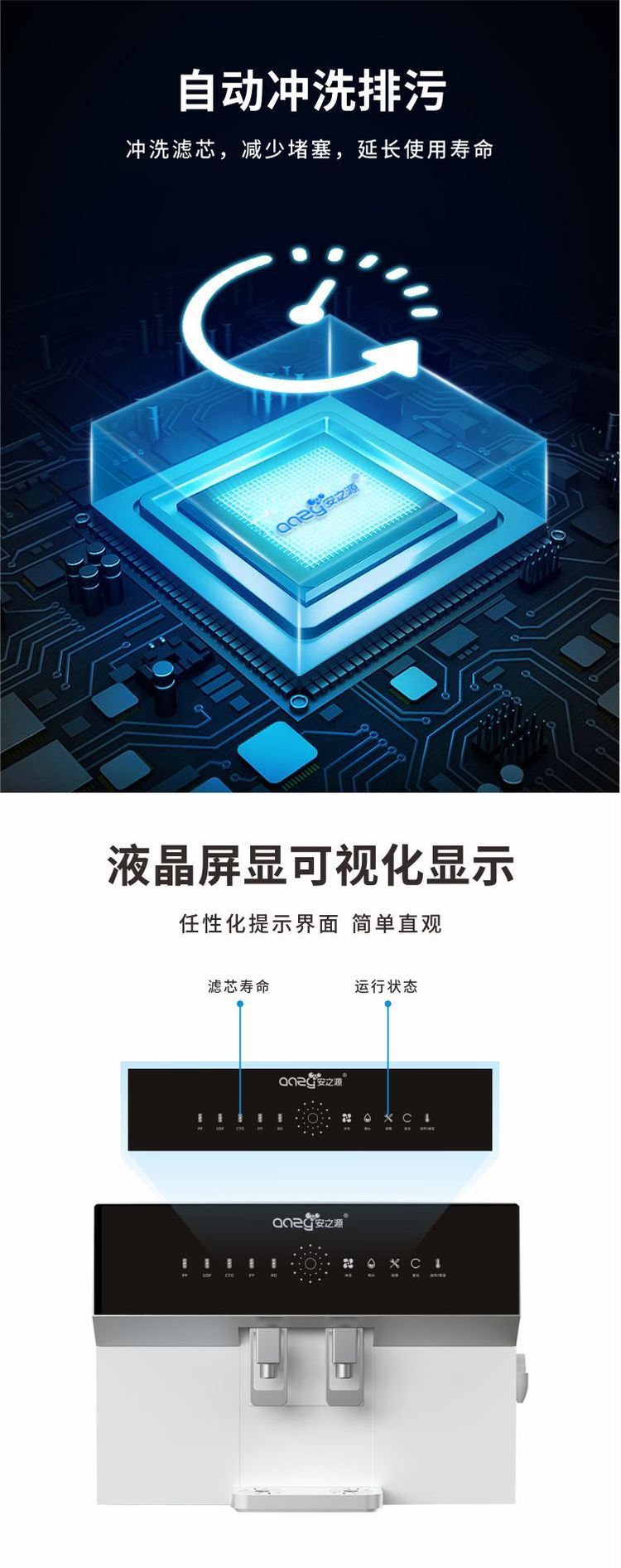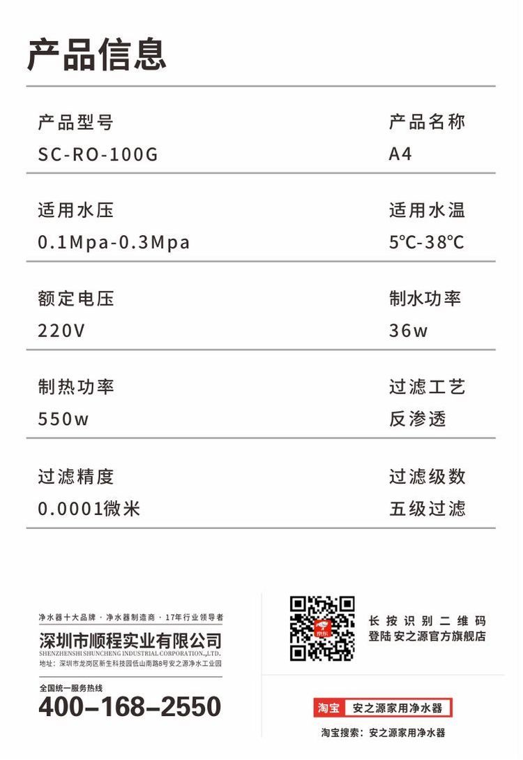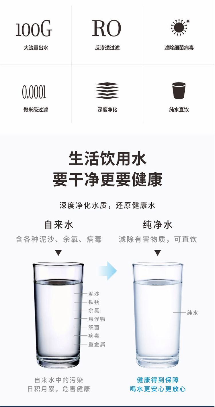安之源(anzy)自来水直饮净水加热一体反渗透100G家电原装厨房RO纯水机A4