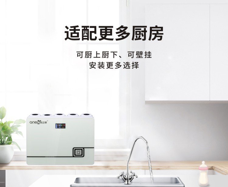 安之源(anzy)新一代节能净水器家庭厨房RO纯水机雅白Y-A型SC-RO-100G自来水直饮机