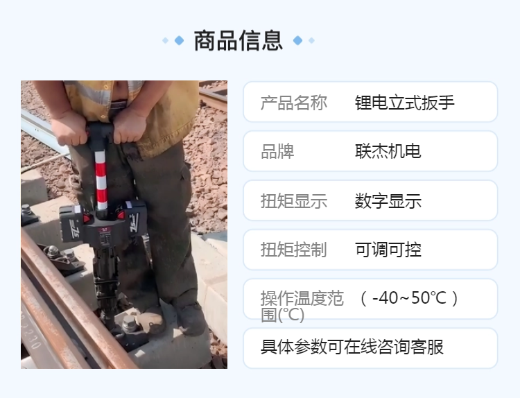 联杰机电锂电立式扳手数显输出扭矩防水设计保证全天候施工需要