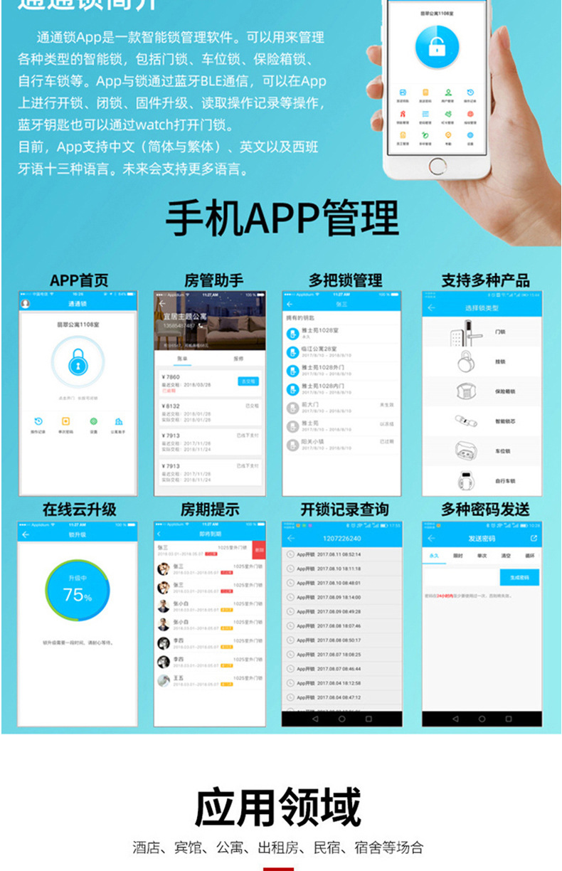不锈钢酒店门锁公寓密码宾馆智能门锁民宿刷卡锁APP蓝牙门锁厂家