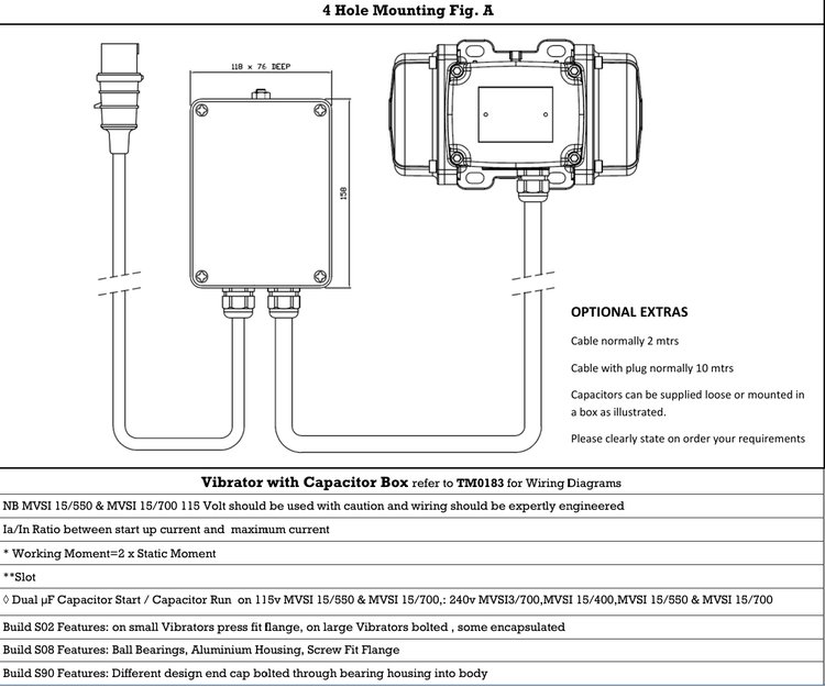 此款户外振动电机,应激力5.42KN(50Hz)/5.81KN(60Hz),重量20.4KG(50Hz)/19.0KG(60Hz),输入功率320W,电流2.8A,其它技术参数详见附图。