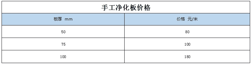 三、100mm岩棉净化板价格表;