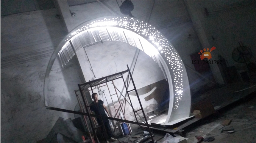 发光月亮不锈钢雕塑、园林艺术雕塑夜间效果印象满分