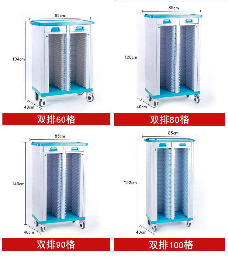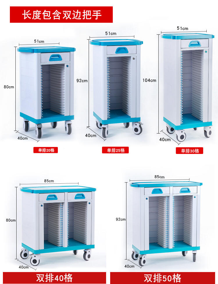 医用加厚ABS塑料病历车移动医疗推车医院双排病例柜不锈钢病历夹
