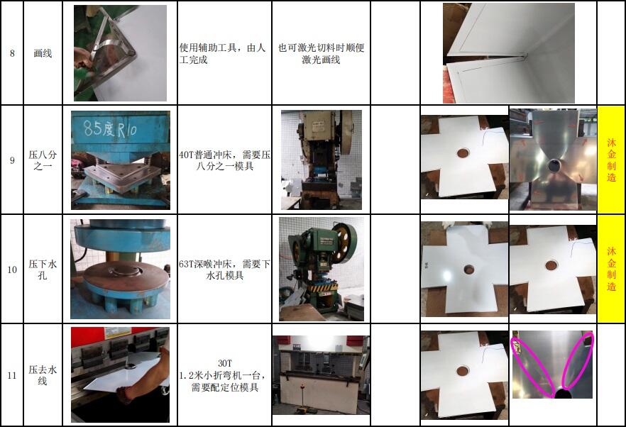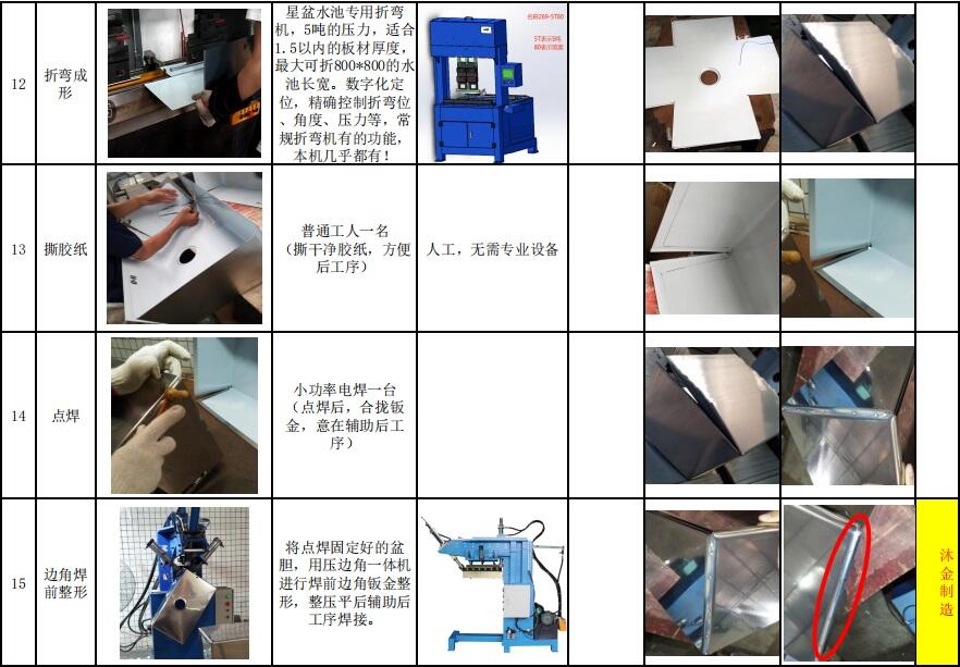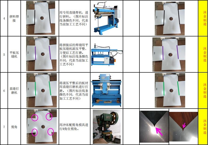 拼料水斗生产设备及模具:直缝焊机、拼板焊缝滚压机、直缝焊打磨机、剪角模具、八分之一模具、下水孔模具、压边角一体机、自动焊角机、压边机、外(阳)角打磨机、内(阴)角打磨机。