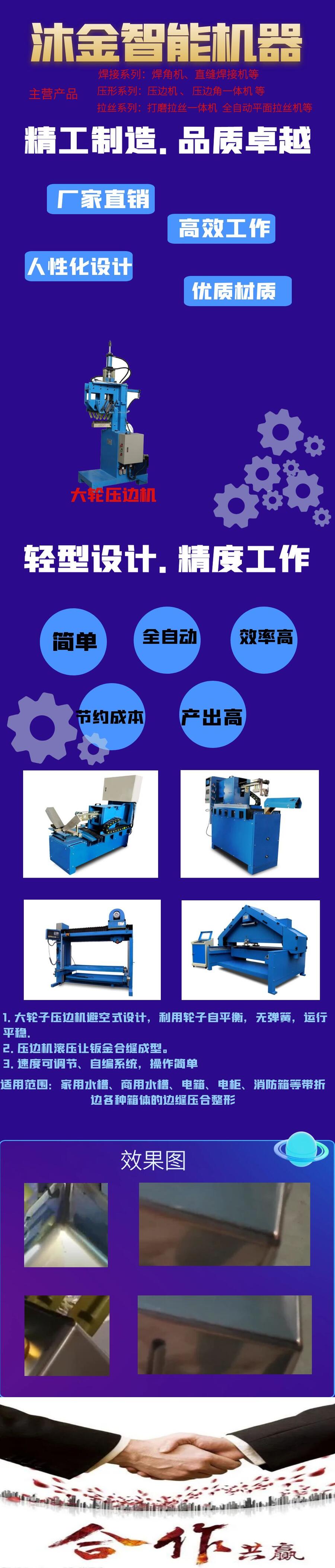 大轮压边机,选择沐金智能机器,帮您解决各种带折边槽体箱体R边成型问题。