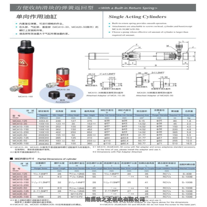 现货代理Masada日本マサダ製作所千斤顶単動式油圧シリンダMCA35-100