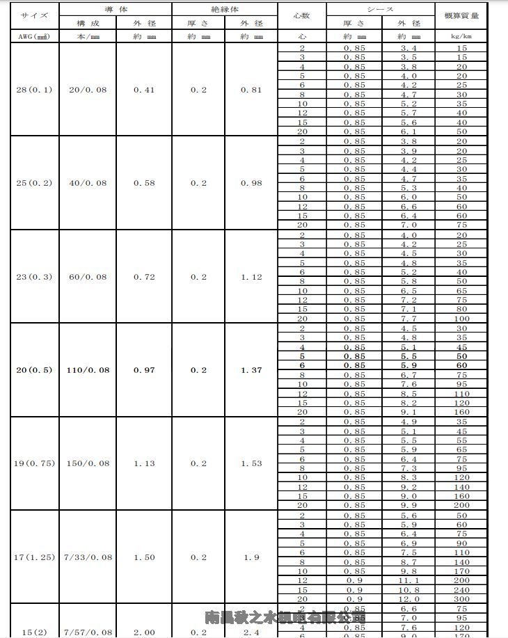 电缆导体是0.08mm极细铜线,电缆细径化。