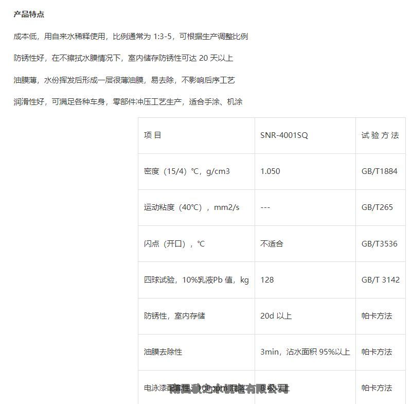 现货供应帕卡濑精水性冲压油SNR-4001SQ