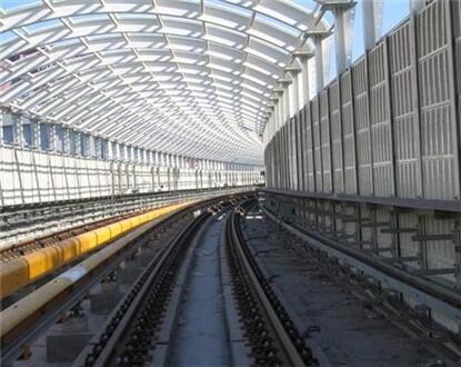 声屏障主要由钢结构立柱和吸隔声屏板两部分组成,立柱是声屏障的主要受力构件,它通过螺栓或焊接固定在道路防撞墙或轨道边的预埋钢板上;吸隔声板是主要的隔声吸声构件,它通过高强弹簧卡子将其固定在H型立柱槽内,形成声屏障。声屏障的设计已较为充分地考虑了高架高速道路、城市轻轨、地铁的风载、交通车辆的撞击安全和全天候的露天防腐问题。它外形美观大方,制作精致,运输、安装方便,造价低,使用寿命长,特别适用于高架高速道路和城市轻轨、地铁的防噪声使用。
