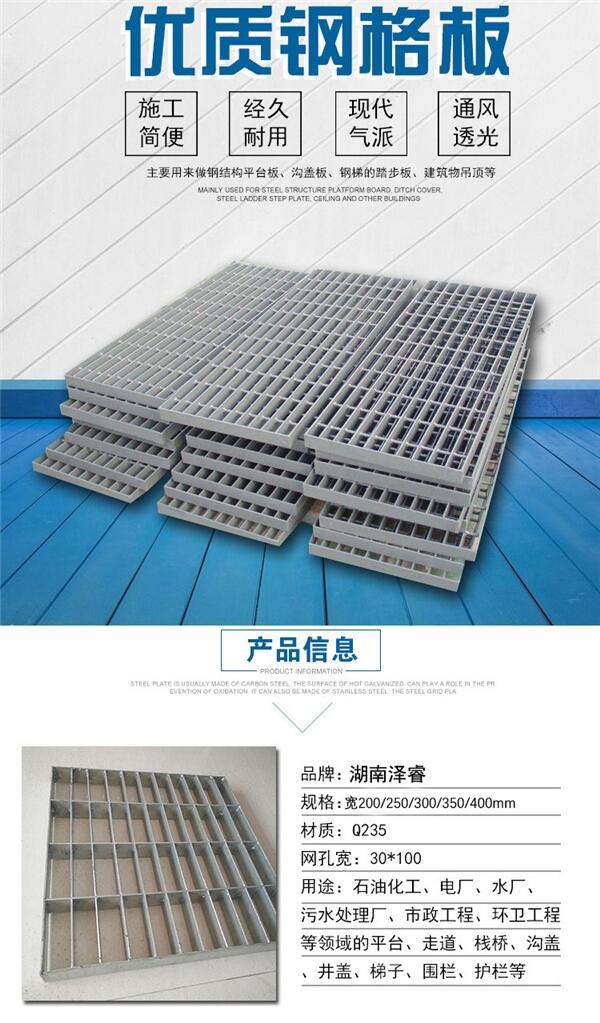钢格板采用钢格板设计制造,广泛用于城市道路,广场,园林,码头,机场,停车场,公路,铁路,工业工程等各类工业民用建筑。