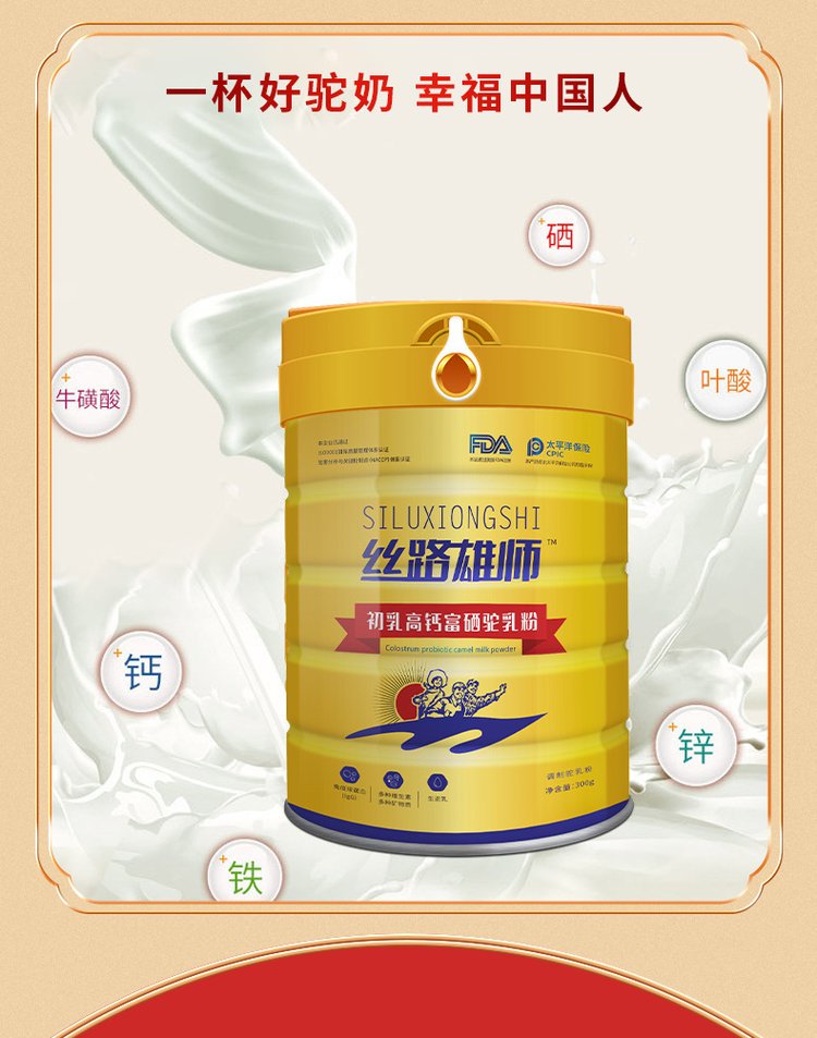雪莲乳业丝路雄狮中老年专用初乳骆驼高钙富硒驼乳粉300g罐装